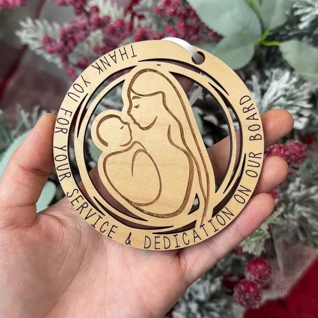 Descriptive Logo Ornaments • Custom Wood Ornaments • Staff & Customer Gifts