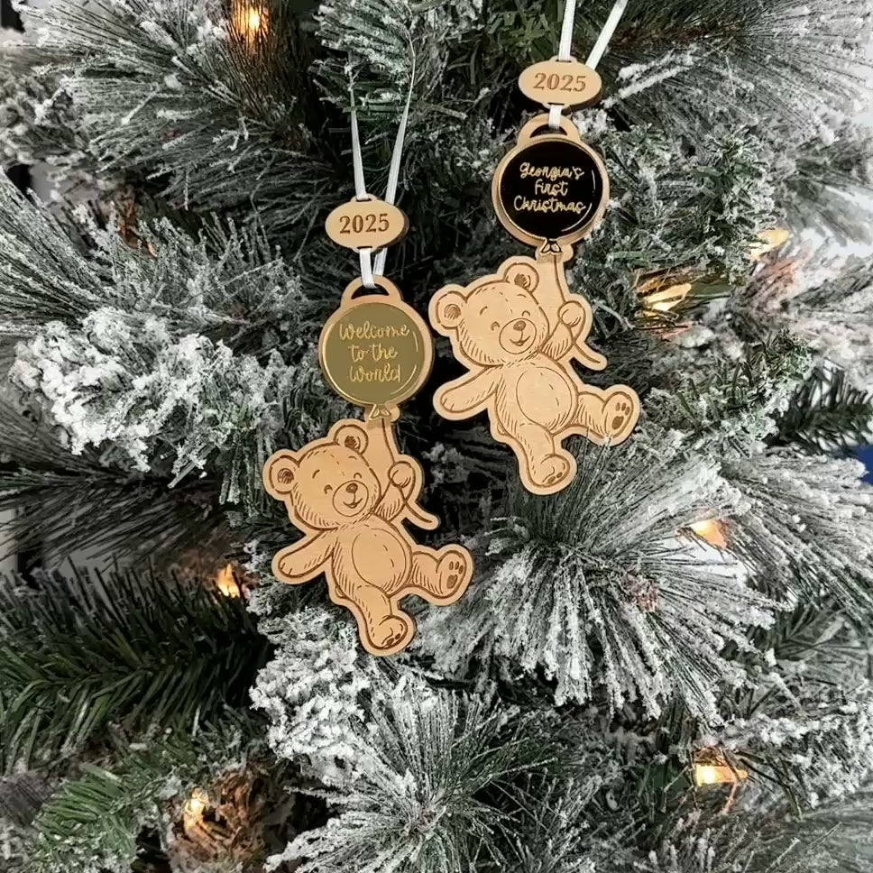 Welcome to the World Bear • Personalized Wood & Acrylic Ornament • For Newborns
