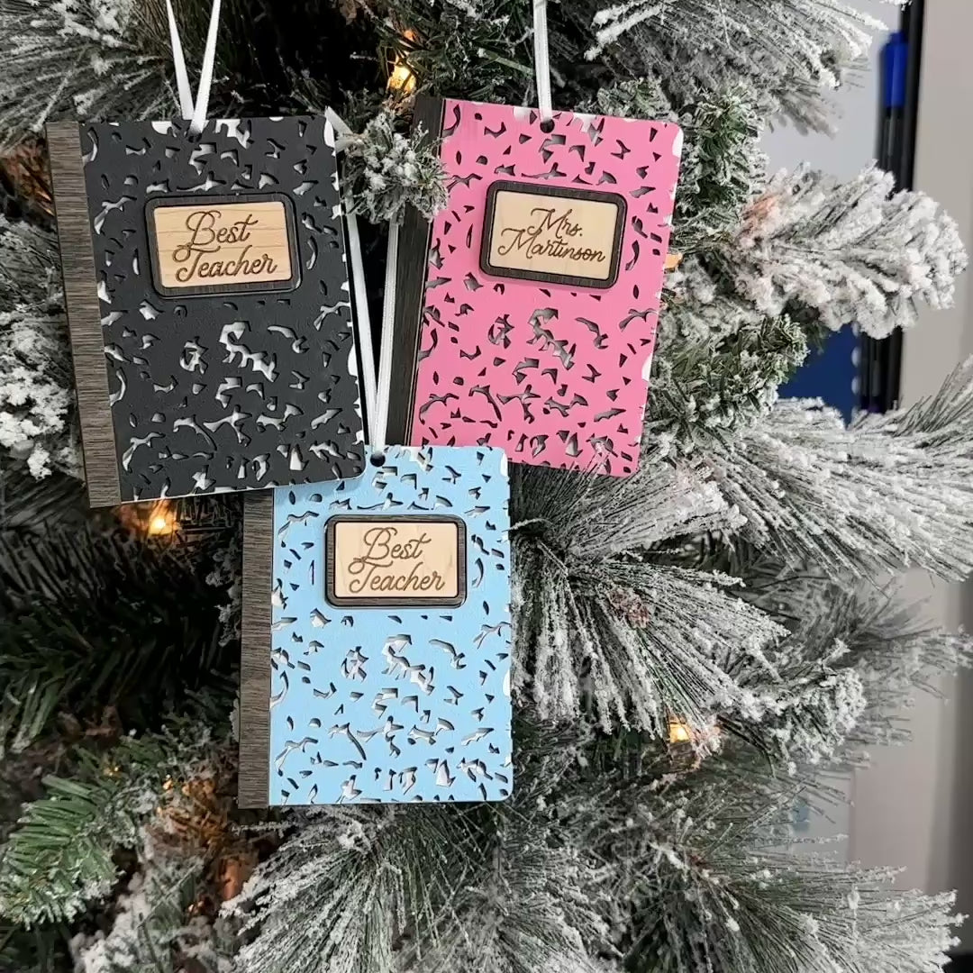 The Notebook Ornament • Personalized 3D Wood Ornament • For Teachers & Students