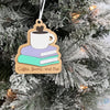 Coffee, Books, and Me • 3D Wood & Acrylic Ornament • For Readers