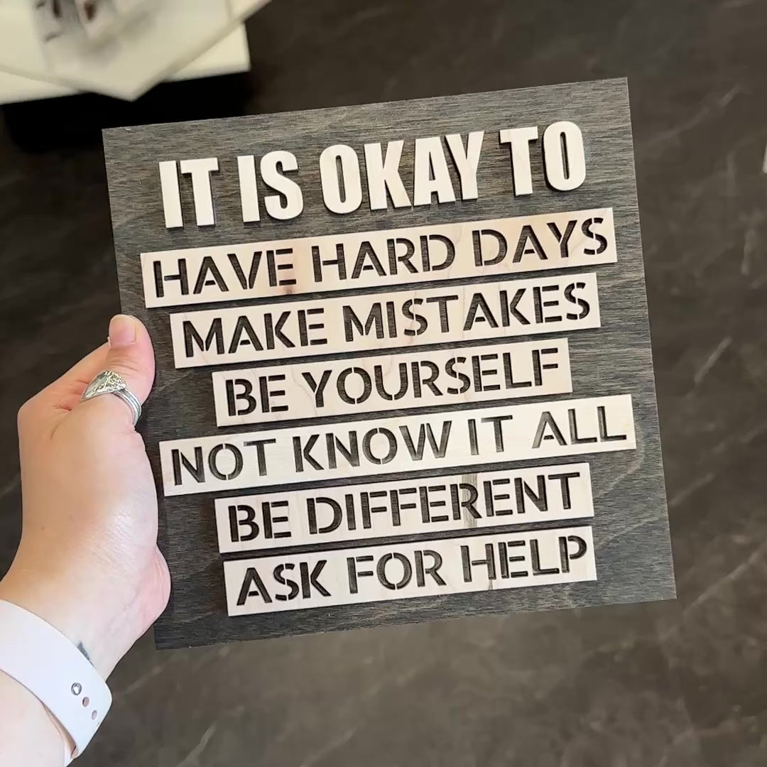 This empowering sign is a gentle reminder that it’s okay to embrace your imperfections. With affirmations like It’s okay to have hard days, make mistakes, be yourself, and more, this sign offers daily encouragement to be kind to yourself. Perfect for any space where a little self-compassion is needed.