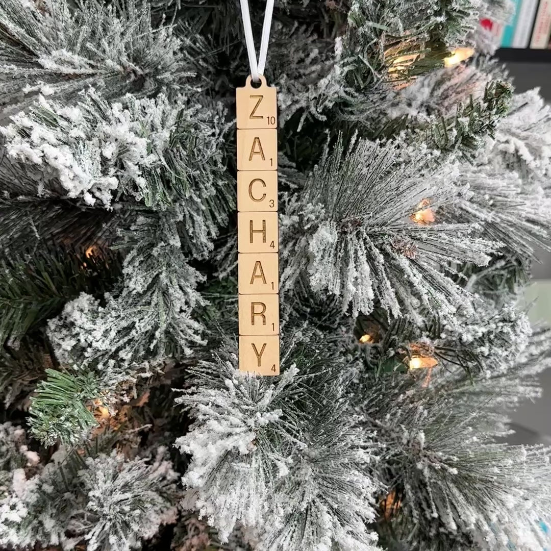 This ornament features each family member’s name engraved onto individual Scrabble-style tiles, arranged side by side to form your one-of-a-kind ornament. Finished with a ribbon for hanging, it’s a simple and sentimental way to celebrate the people who make game night awesome.