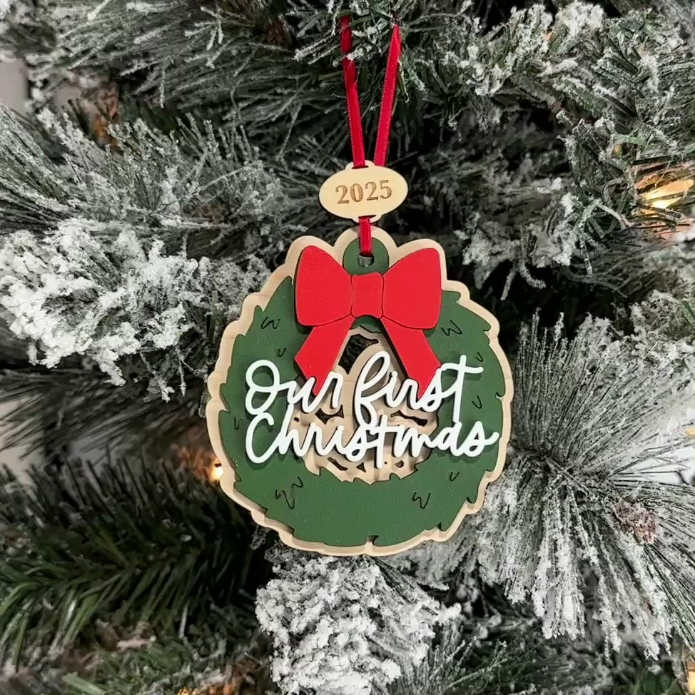 Our First Christmas Wreath • 3D Wood & Acrylic Ornament • For Families