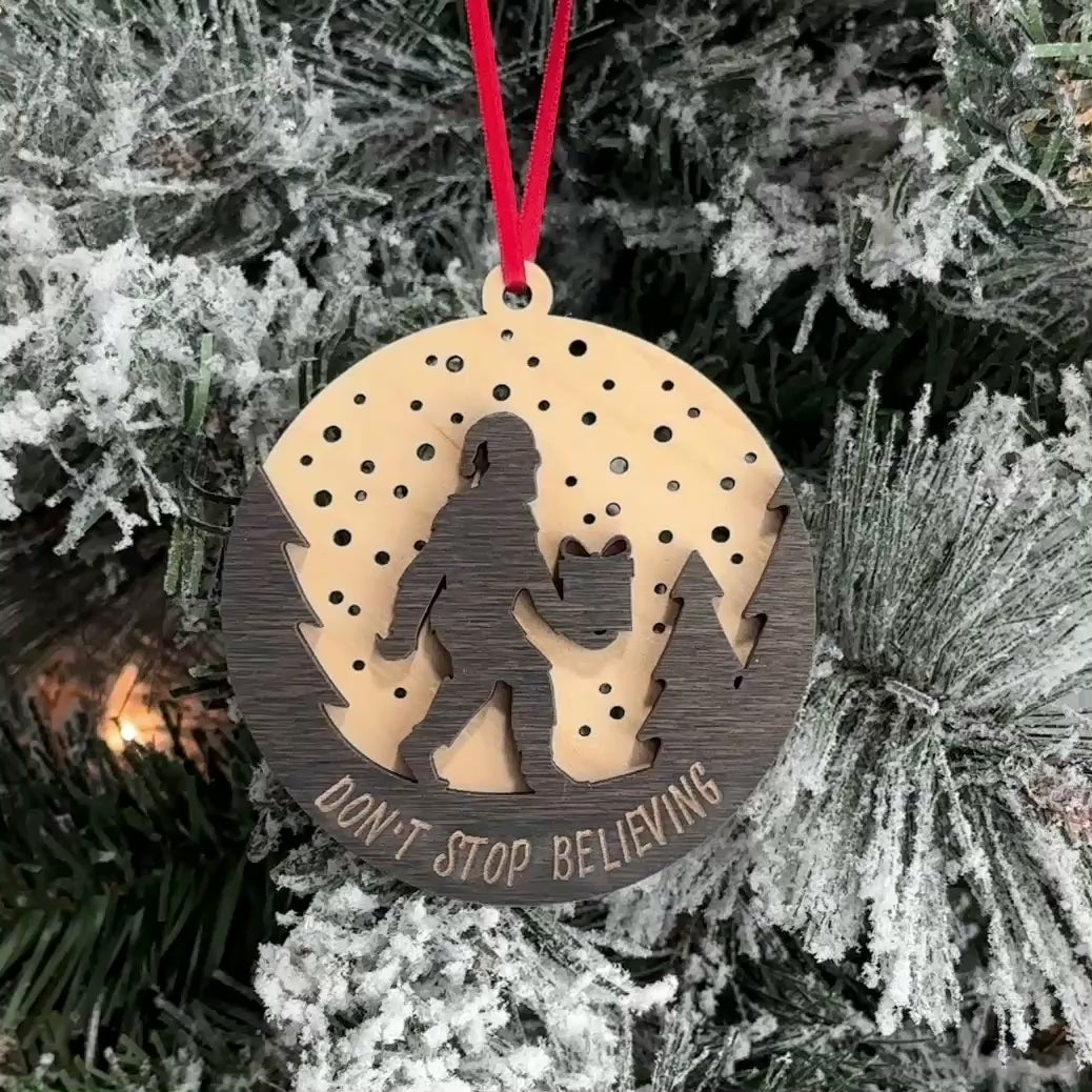 Don’t Stop Believing Sasquatch • 3D Wood Ornament • For Believers & Bigfoot Fans