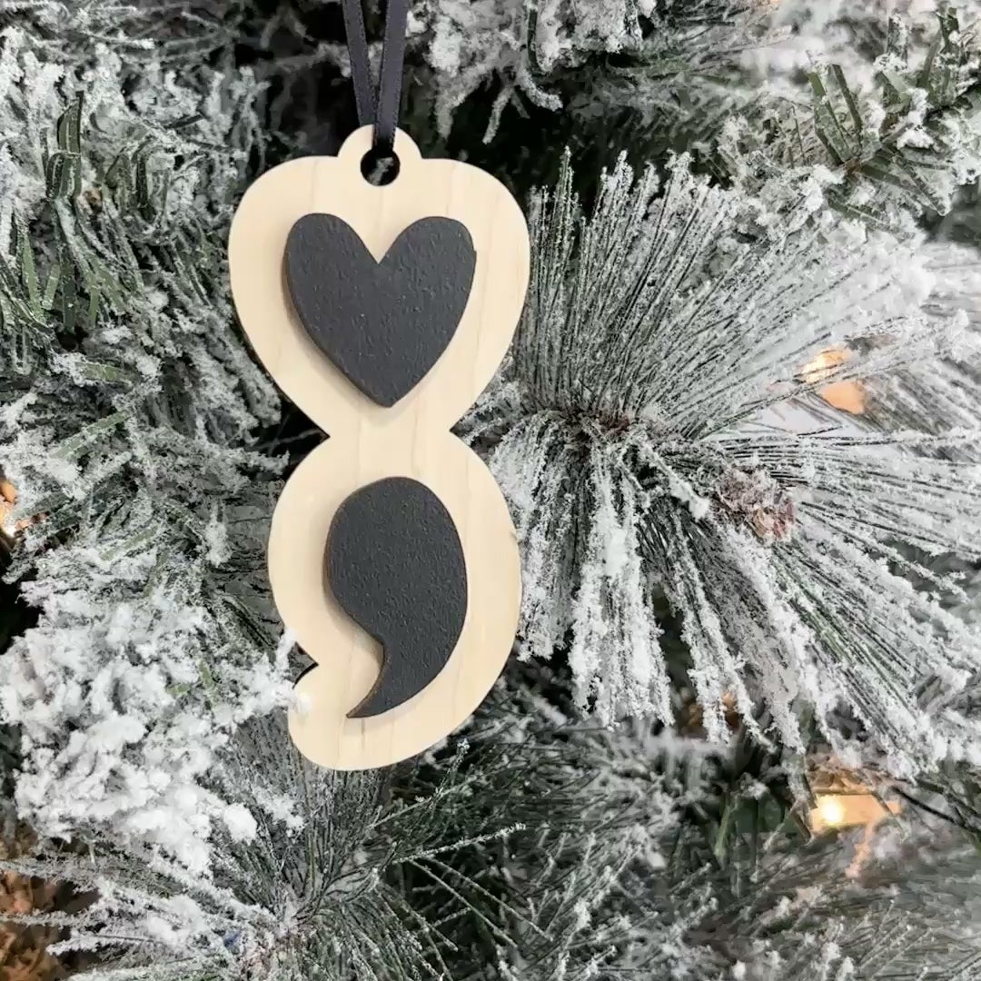 The Semicolon • 3D Wood Ornament • For Mental Health Awareness