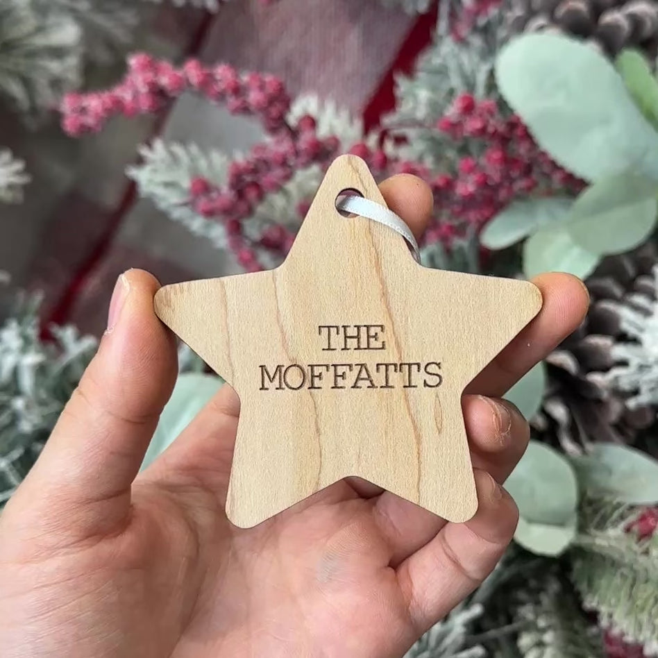 Each ornament is handcrafted in our Saskatchewan studio from 100% Canadian-harvested birch. The stars are cut, engraved, and finished with ribbon.